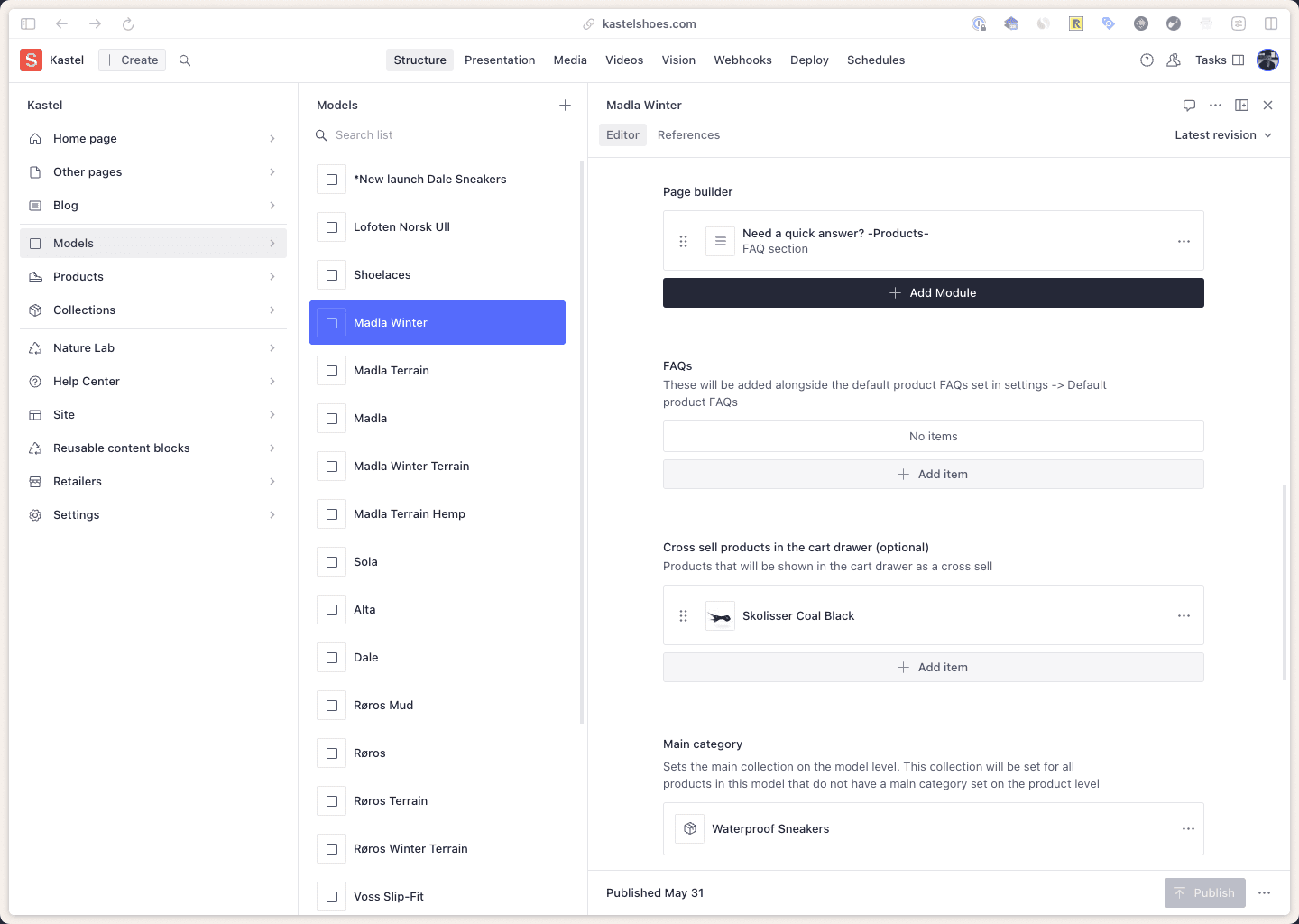 In this page, or document as it's called you can set information that is shared across multiple products. In this case all colorways of the Madla Winter shoe model.