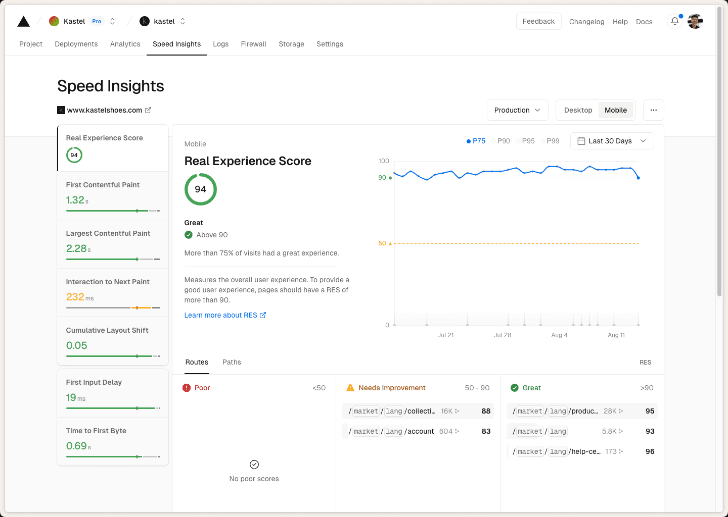 We use Vercel Speed Insights to monitor the actual performance of the site.